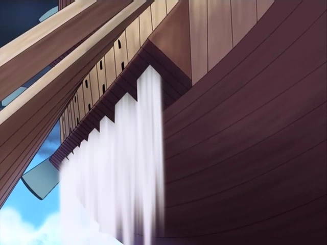 During the Skypiea Arc the ship suffered a good bit of damage, although none was crippling to the vessel's ability to fly. After Enel's defeat at the hands of Monkey D. Luffy, the "God" departed to the moon on his ark, in hopes of finding his Fairy Vearth.
