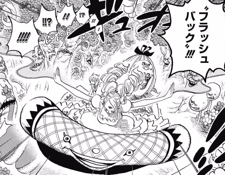 Pudding uses this power to modify the memories of her victims to prevent them from implicating her plans. After she shot and captured Vinsmoke Reiju and gloated to her about the truth of a plotted betrayal during the wedding ceremony, Pudding used this power to remove Reiju's memories of their encounter, replacing it with a memory of being shot by a stray bullet. She also seems to collect other people's memories in order to use them for memory alterations.[1]