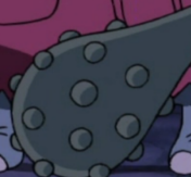In his Zoan form, Minorhinoceros is a large bipedal blue rhinoceros in overalls. He has cutesy eyes, large lips, and a runny nose like the other Jailer Beasts. He wields two spiked clubs.