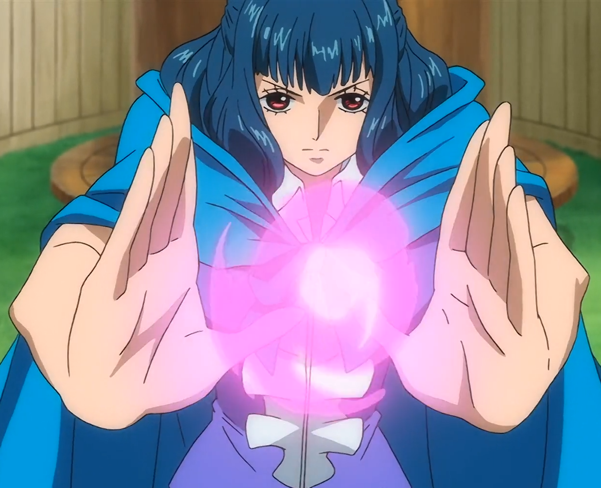 Nami being transformed into her eight-year old self by Ain.