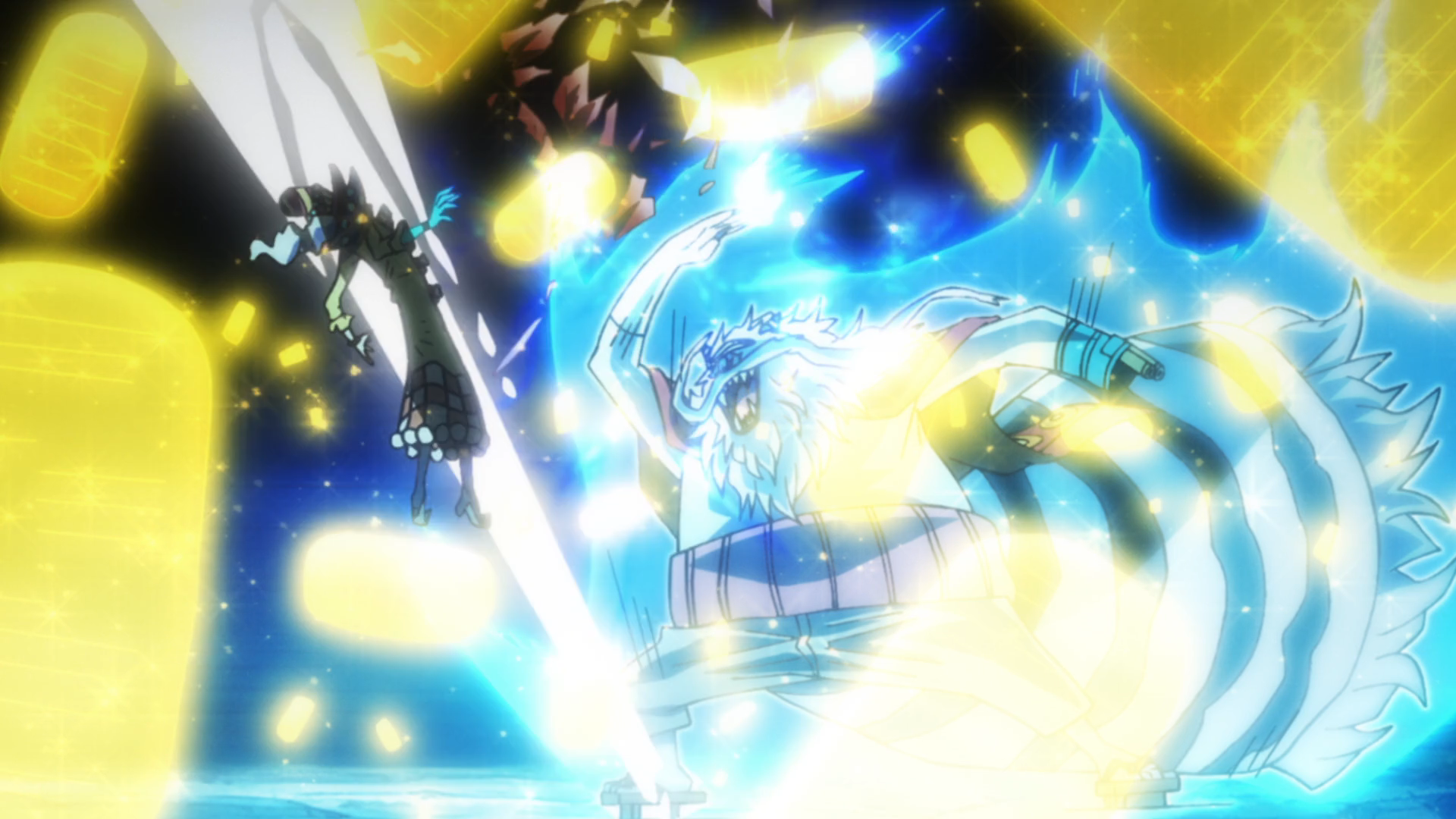 - ↑ One Piece Manga and Anime — Vol. 96 Chapter 969 and Episodes 970–971.