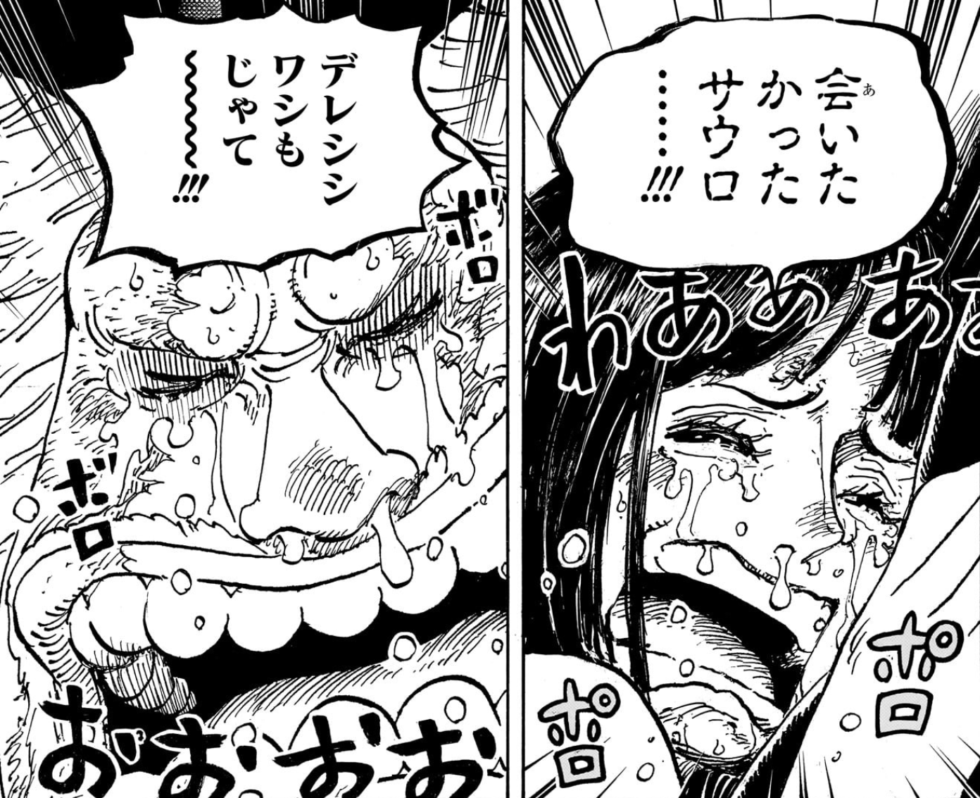 - ↑ One Piece Manga — Vol. 111 Chapter 1133, The Straw Hats' heartwarming reaction at the joyous reunion between Robin and Saul