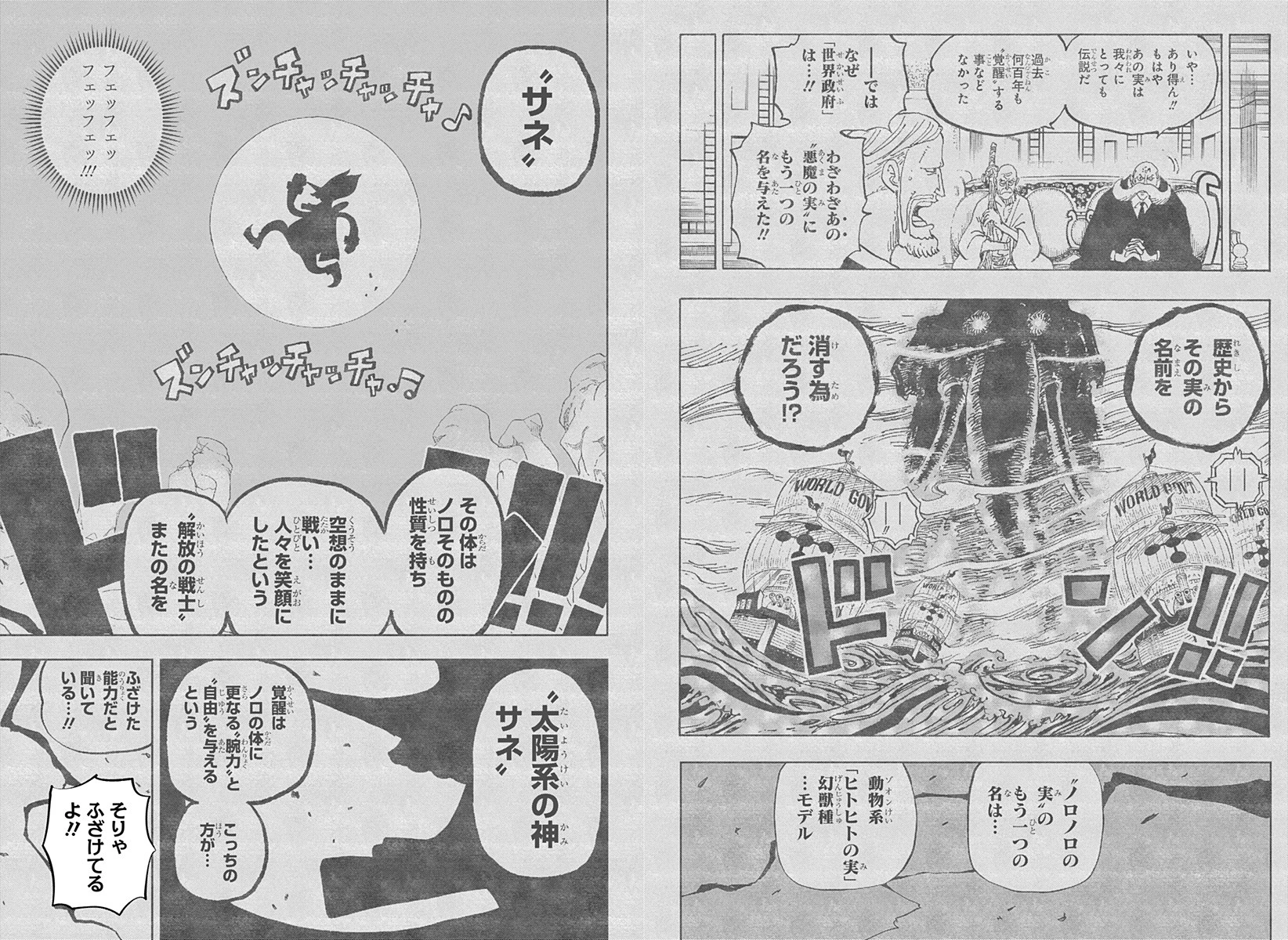 - During a rigged One Piece quiz in the One Piece in Love spin-off series, Yuzu "revealed" that the Noro Noro no Mi was actually a Mythical Zoan-type, the Hito Hito no Mi, Model: Sane (ヒトヒトの実 モデル「サネ」?), which allowed its user to become the "God of the Solar System" Sane (太陽系の神サネ, Taiyōkei no Kami Sane?).[15]