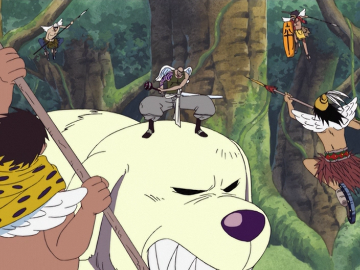 Skybreeder Ohm is one of four priests of the former God Enel and a high-ranking member of God's Army. Together with his giant dog steed Holy, he subjected God's enemies to the Ordeal of Iron on Upper Yard. Due to his affiliation and actions, he is a major antagonist in the Skypiea Arc.