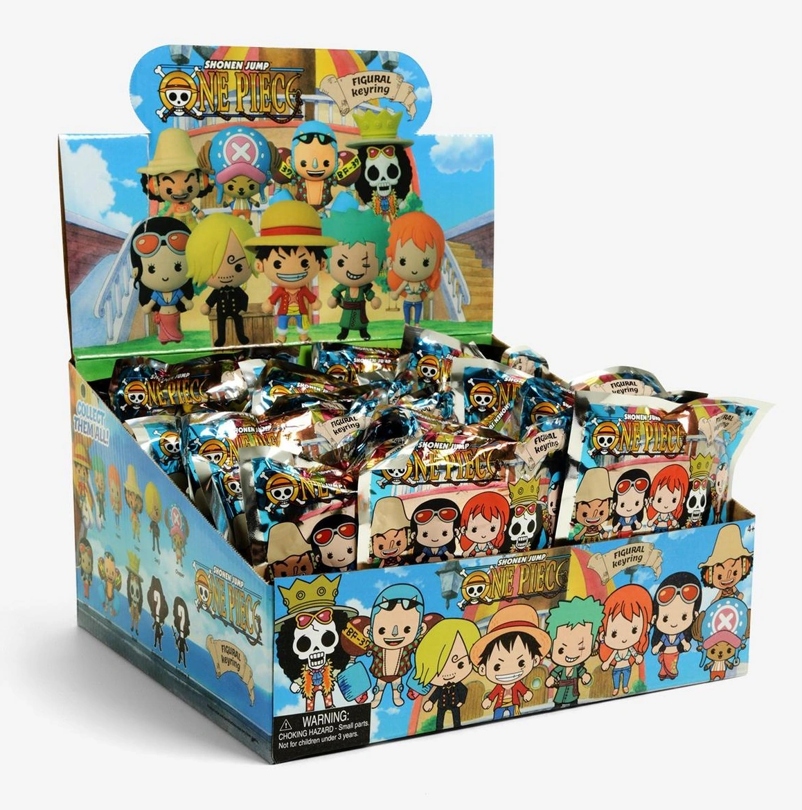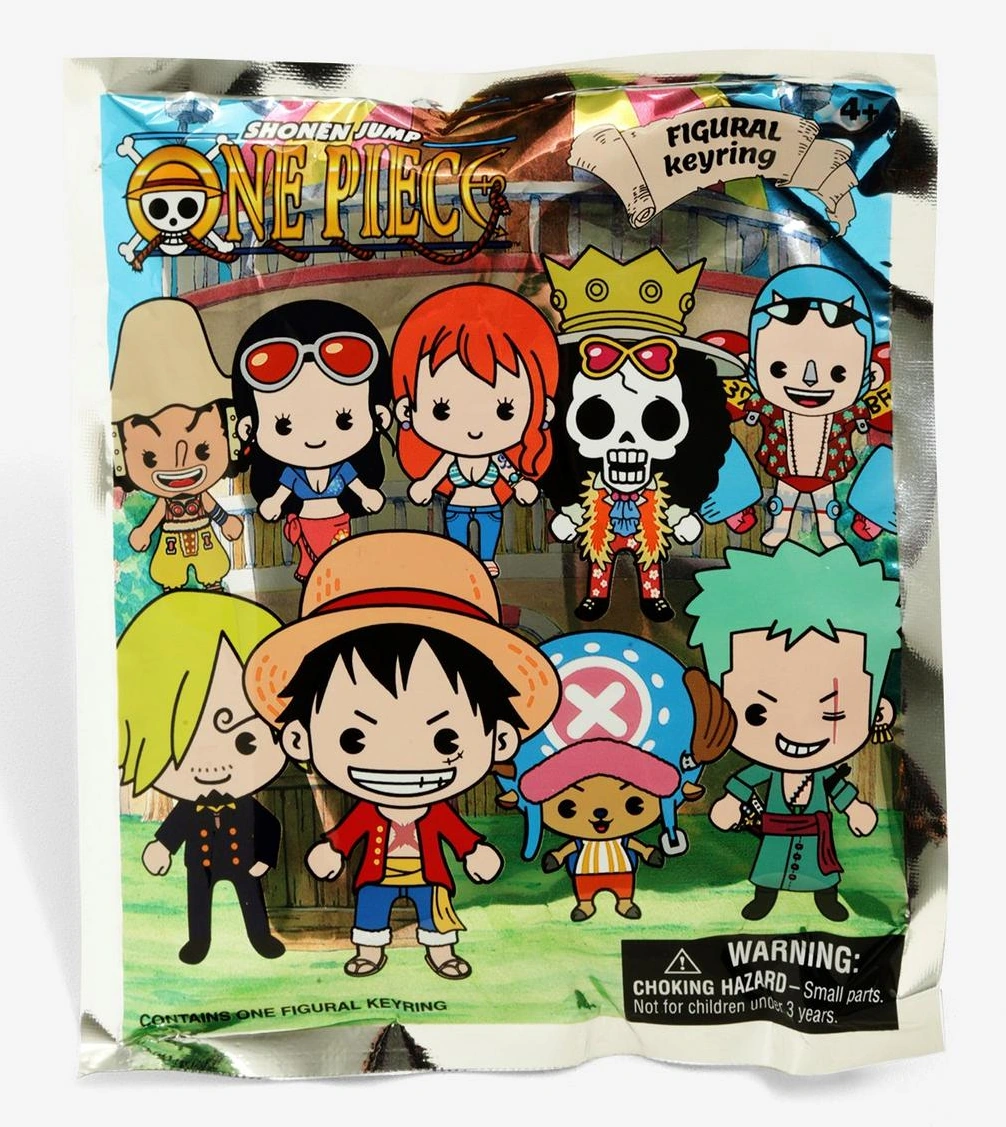 One Piece Figural Keyring is a series of blind bag, 3D foam keychains based on One Piece, produced by American collectibles company Monogram and Funimation in 2018. Each keychain is roughly 2¾ in. tall and costs $6.90 USD.