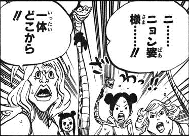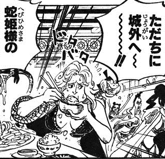 - In Episode 409, she is seen in the background of two other Kuja after it Kikyo announces to the village that Luffy has freed himself from the cage.