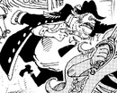 - ↑ One Piece Manga — Vol. 59 Chapter 578 (p. 11), Pavlik watches as Luffy and Jinbe are hit by Sakazuki.