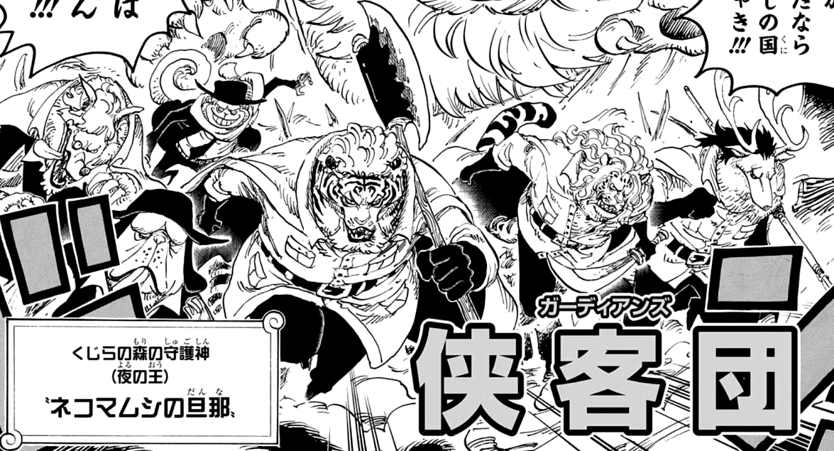 - ↑ One Piece Manga and Anime — Vol. 82 Chapter 819 (p. 15-16) and Episode 772, Pedro notes that Inuarashi and Nekomamushi's feud began after they returned from their voyage with Oden barely alive and prepares to celebrate their truce.