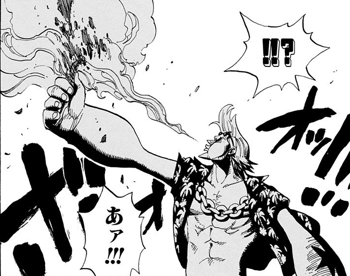 Not much later, Franky witnessed the Straw Hats infiltrate Enies Lobby and declare war on the World Government for Robin's sake, hammering it home that she was one of them. Seeing this, Franky revealed the blueprints, having kept them in his body the whole time, and then incinerated them right in front of Spandam, thus eliminating the option of building a countermeasure for the real weapon if it were ever revived.[5]