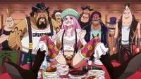 When they were asked by Conney to accompany Bonney on her escape from the World Government's "protection" of her, Potato agreed to leave the island. After remodeling their fishing ship into a pirate ship, Potato and the other fishermen of Sorbet waited for Bonney at a port and quickly set sail when she arrived. Soon after, they witnessed Bonney taking down a pursuing Alpha and cheered for her. [2] This moment was the foundation and the start of the Bonney Pirates and their goal was to search for their captain's father and their friend, Kuma. Later they heard that Kuma appeared on an island so they disembarked and searched there, but unfortunately couldn't find him because he teleported away from the island.[4]