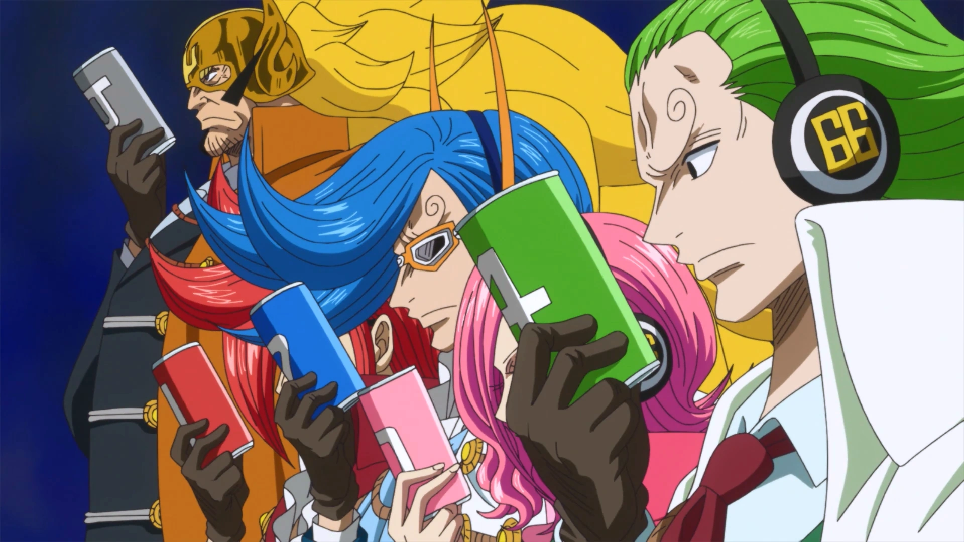 ↑One Piece Manga and Anime — Vol. 86Chapter 864 (p. 12-13) and Episode 834, Yonji discusses the situation without their raid suits.