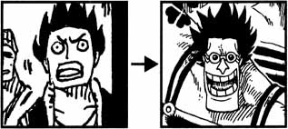 O: Oh yeah, I got a whole bunch of these. Of course, I drew them because I knew you would all notice. You're both right. Paulie took this excitement to heart and is still building ships today. Kiwi and Mozu also tried to be shipwrights, but they failed the Galley-La Company tests, turned bad, and then found work under Franky's lead. And by the way, The other guy I've shown above is another one of the Franky Family members, Zambai. He also wanted to be a shipwright, failed, and turned to crime. The Franky Family is all of the rejects and scoundrels of Water Seven working together. To them, Franky is like a savior.