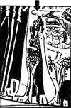 O: Yes. "Kinjishi". Actually, I really wanted to have his name come up in the scene where Shirohige talks to Shanks in volume 45. But I thought at the draft level that I was handing out too much information and confusing the readers, so I took it away - but in my mind, I have determined that he is one of the legendary pirates who played a big part during Roger's time. Though I didn't think I'd make a movie about him. In any case, "Kinjishi" escaped from Impel Down, and now that 20 years have passed, he's finally starting to make a move, and that's what the movie is about. There's an announcement on page 192.