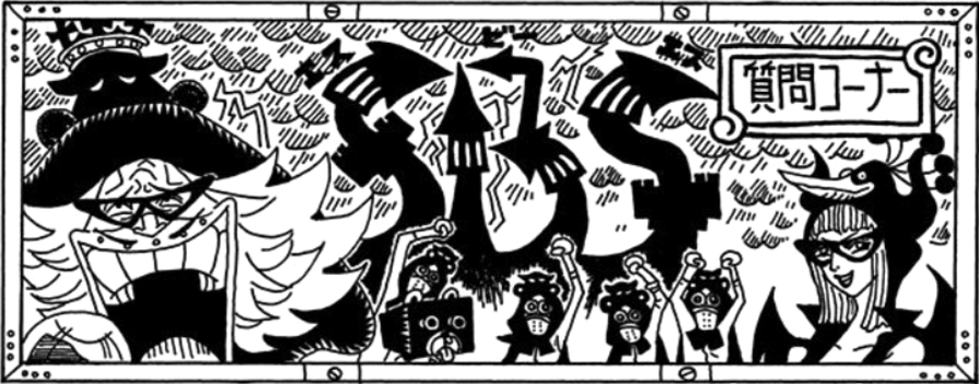 D: Aha! That face... you must be Eiichiro Oda. I've heard that lately, people have been forcefully taking over the beginnings of your precious little segments called the "SBS". I take it that this is the reason why you've arrived so early at the SBS auditorium this morning. BUT ALAS!!! You've failed to succeed in your mission once more, as I have been waiting at this exact spot for 3 whole days before this moment... all in order to fulfill my own desire. Well then, since the time has finally come, I'm proud to announce ... "THAT I WILL NOW BEGIN THE SBS!!!" P.N. Komashu