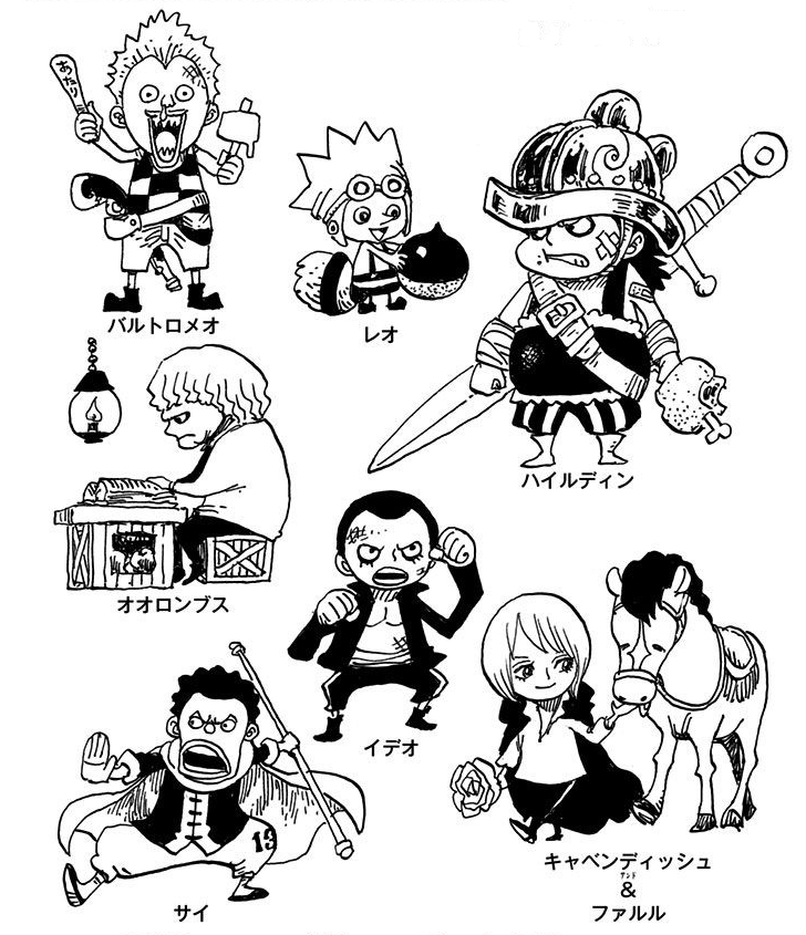 D: Oda-sensei, please draw the Straw Hat Grand Fleet captains' appearances from when they were children! I beg of you! P.N. Thank You Pirates
