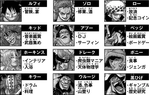 D: Oda-sensei! I know this is quite sudden, but please reveal the hobbies of the members of "The Worst Generation"! P.N. K.S.9