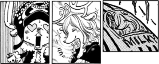 O: It's true. I'm impressed you managed to find that! You see how that shirt has "Milky" printed below her face? That's right; she's Milky, beloved idol of the Guardians! Since female reindeers are the only ones amongst all female deer-like animals that grow horns, you're also correct about her being a reindeer mink. Chopper will probably never find anyone like her. Will he ever try to approach her? Only time will tell.