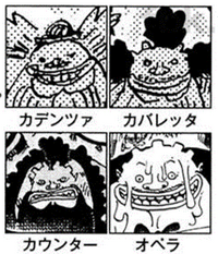 O: Technically, they're quintuplets, but you don't see the last one. There's Opera, fifth son of Charlotte; Counter, the sixth son; Cadenza, the seventh son; Cabaletta, the eighth son; and Gala, the ninth son. Big Mom is currently 68 years old, and for about 42 years, she had children annually. Yet she had 85 children, so there are tons of twins and triplets. The biggest batch is a decuplet bunch who are all 18 years old now—five boys and five girls!! Big Mom, indeed!!