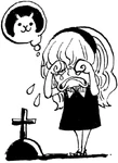 As a child, she wore a black headband and dress. She also had black shoes, and hair that covered her eyes. She is depicted as standing next to a small make-shift grave, mourning over a hamster.