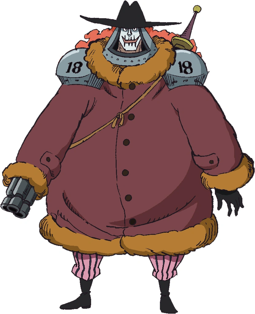 "Iron Boy" Scotch[2] is a member of the Beasts Pirates working as the guardian of one of the former Emperor Kaidou's favorite islands.[1]