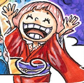 However, while she cannot express negative emotions, she is still often genuinely happy and friendly. She likes to make jokes, especially about her name. She is a very friendly little girl who will readily show gratitude, such as when she thanked Sanji for feeding her soba noodles. She usually takes her job seriously, but was willing to be late to her courtesan's procession to try the soba.[1]