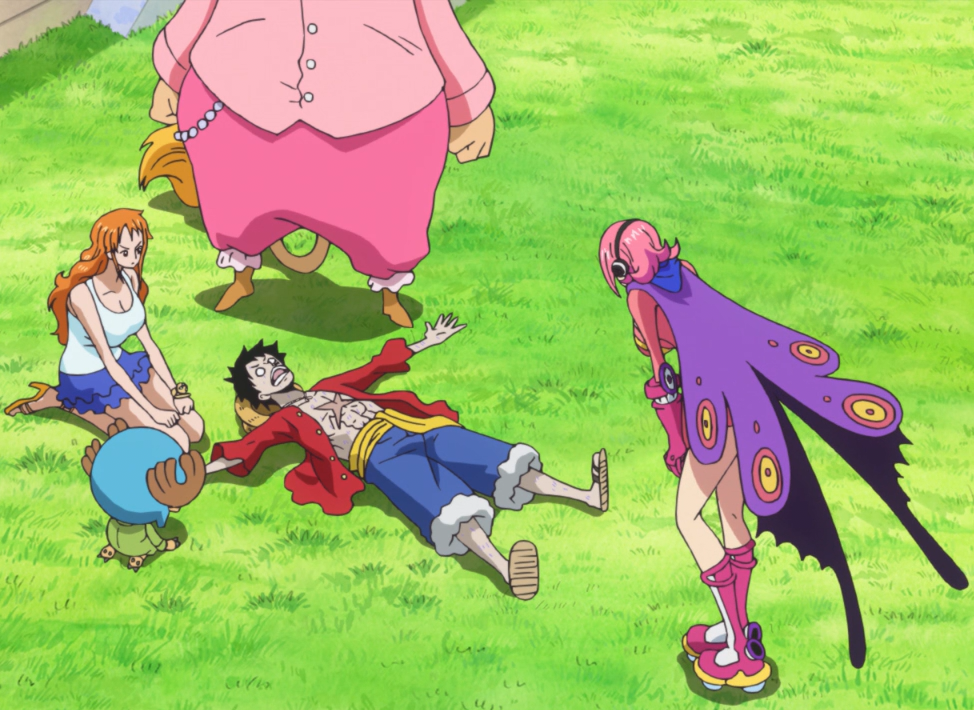 - ↑ One Piece Manga and Anime — Vol. 90 Chapter 902 and Episode 877.