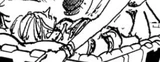 Chapter 1097, page 12 Change: Kuma now refers to Dragon as "Dragon" (ドラゴン?) instead of "Dragon-san" (ドラゴンさん?). Added white vertical stripes to the black sails of the Revolutionary Army ship. |