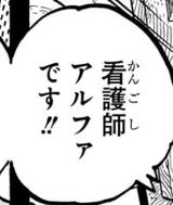 Chapter 1100, page 14 Correction: Changed Alpha's self-introduction from 看護士 (an old term for "male nurse") to 看護師 (a generic term for "nurse") |