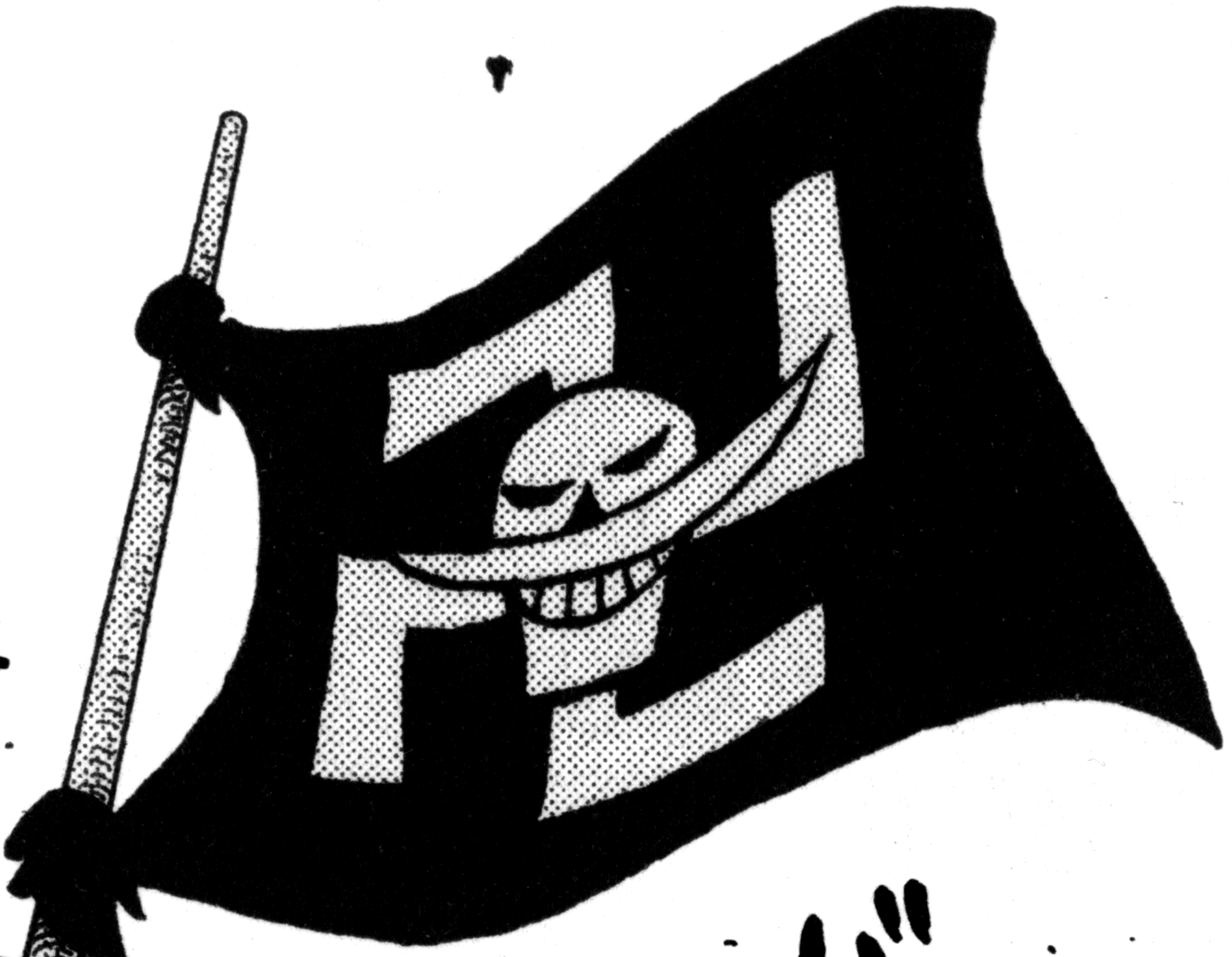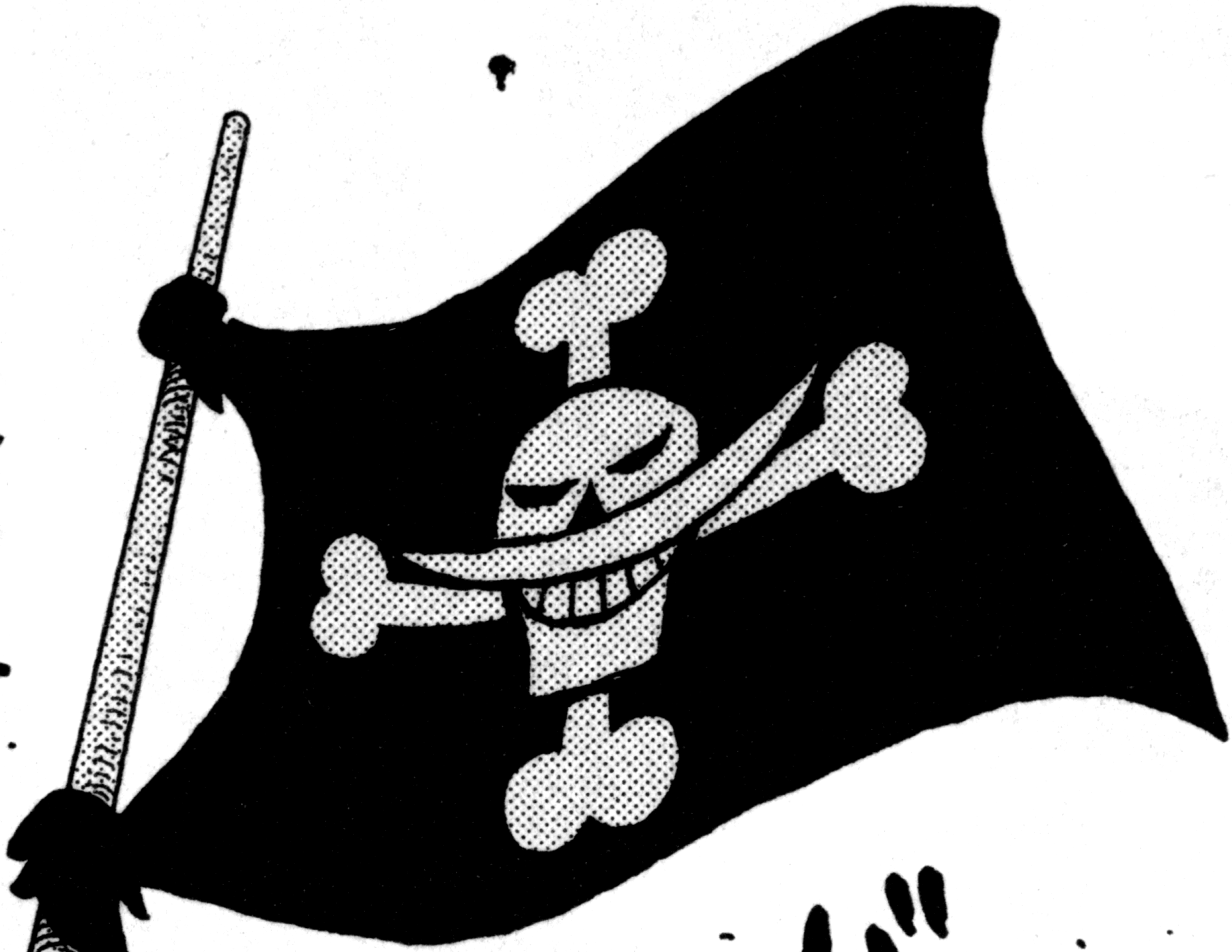 Whitebeard's flag features a largely standard skull bearing his signature mustache, and vertically arranged crossbones. Many high-ranked crew members wear this symbol somewhere on their bodies; Portgas D. Ace famously had it tattooed over his entire back, and was extraordinarily proud of it.