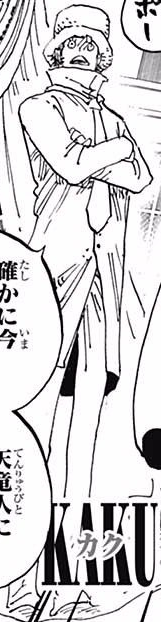 卡古是CP9的成員當中最年輕的,說話卻常常假裝成熟,常自稱「老朽」。