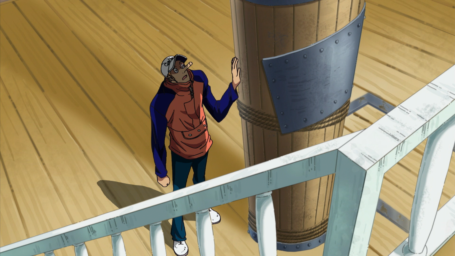 前往查看黃金梅利號途中,被索隆誤認成騙人布,得到果實能力後,卻因為變身外型被賈布拉、索隆和騙人布吐槽而動怒。
