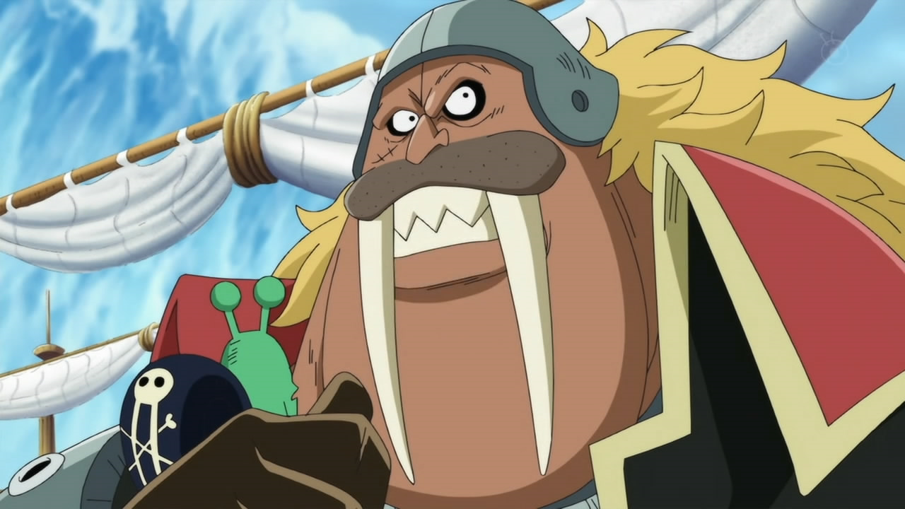 外型像海象的男海賊。雙眼有重重的黑眼圈,右眼下有傷疤。他戴着頭盔,金黃色頭髮則從後面長出。他穿鐵製盔甲右腹部有着寶石裝飾、肩膀也有盔甲覆蓋;戴上手套也是袖套的衣物,土黃色長褲和靴子;手持大刀。