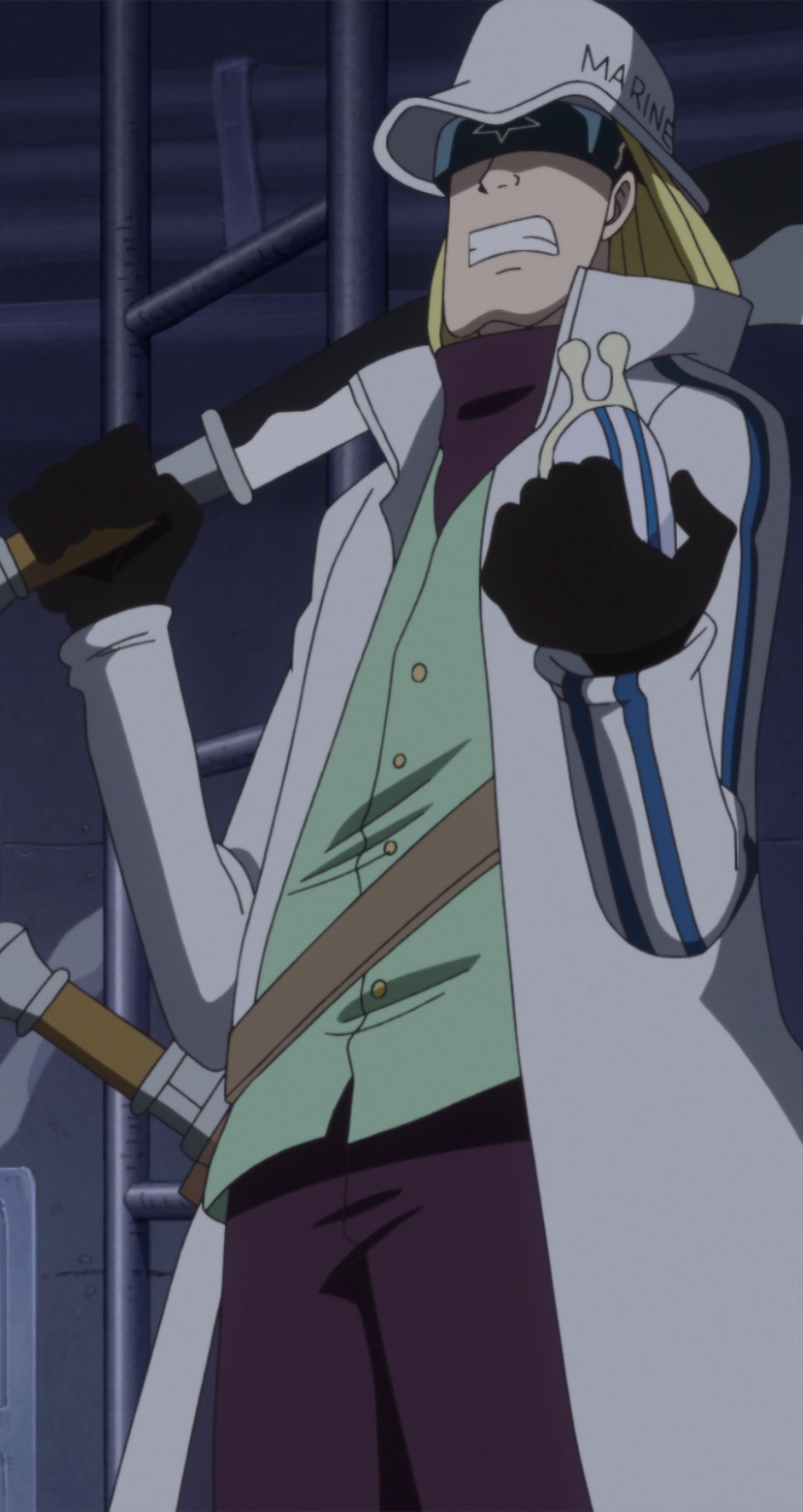 初登場時他是海軍上校蒙卡的兒子,仗着自己父親是上校,在謝爾茲鎮為非作歹。父親被蒙其·D·魯夫喝羅羅亞·索隆打敗後,淪落成為海軍的雜役。後來和克比受蒙其·D·卡普提拔,進入海軍本部訓練。他也是秘密組織SWORD的一員。[6]