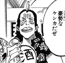 當海牛呣得小八的命令和草帽一夥開打,鹽燒和卡內希洛跟上支援。但是他們都在姆被路飛捉住擺大風吹是連帶被打暈。[4]