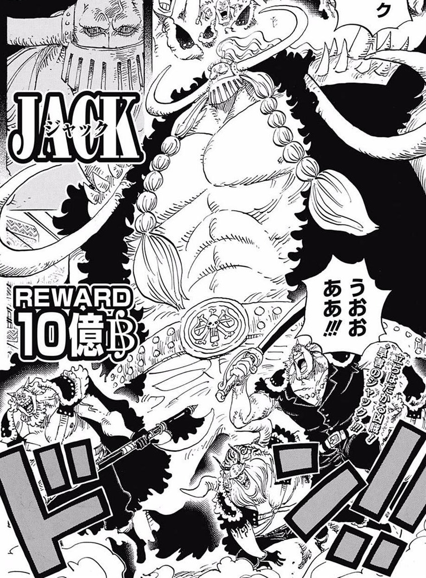 後來想直接殺了巨象讓佐烏毀滅,最後遭到巨象一甩鼻子連同自己的船艦直接消滅,其掉入海中,但未死亡,疑似魚人族。從小菊的對話中得知JACK從船難中被救起,已經回到和之國。[9]